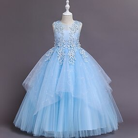Děti Dívčí Šaty na párty Květinový Bez rukávů Výkon Zvláštní příležitosti Elegantní Princeznovské Polyester Léto Jaro 4-13 let Rubínově červená Vodní modrá Oranžová