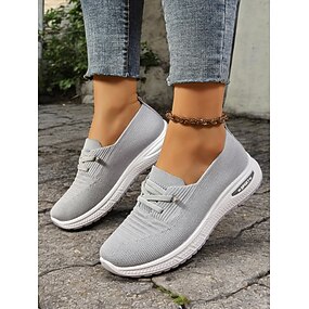 dámské šedé slip-on úpletové tenisky se vzduchovou odpruženou podrážkou – lehké a prodyšné boty na procházky, cestování i běžné nošení