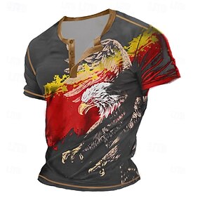 Pánské Orel Tričko Henley Trička Krátký rukáv Vinobraní Módní Designové Venkovní Ležérní Denní Léto Jaro & podzim Černá Šedá Námořnická modř Henley Tričko Henley