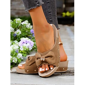 dámské sandály na klínu s mašlí - kamínkové skluzavky s otevřenou špičkou pro běžné a letní nošení
