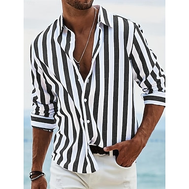 Pánské Košile Letní košile Oblečení na pláž Košile na knoflíky Bledě růžová Černá Světlá růžová Nebeská modř Tmavě šedá Dlouhý rukáv Proužky Límeček Dovolená Párty Oblečení Módní Pro volný čas