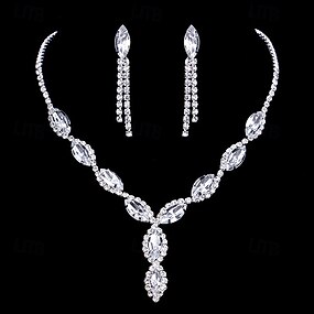 Svatební šperky, 1 sada, slitina s kamínky, 1 náhrdelník, náušnice, dámské personalizované stylové umělecké šperky pro svatbu, zvláštní příležitost, svátek