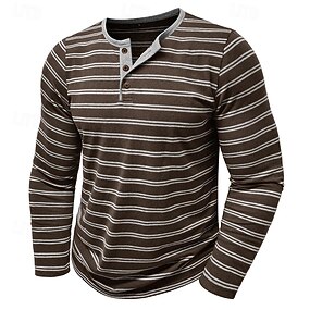 Pánské Tričko s knoflíkem Tričko Tričko Henley Trička Dlouhý rukáv Henley Jaro & podzim Proužky Módní Designové Základní Knoflíky Dovolená ulice Jdeme ven Černá Bílá Khaki Top tričko pro muže