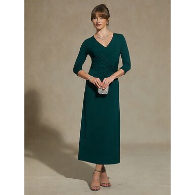 Dámské Midi šaty Plášťové šaty Áčkové šaty Elegantní Denní Dovolená Svatební host Běžný Pevná barva 3/4 délka rukávu Do V Smaragdová zeleň