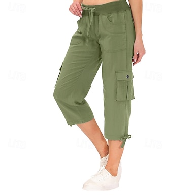Dámské Kargo kalhoty Capri kalhoty Módní Šik ven Telecí délka Přírodní Jednobarevné Kapsy Elastický pas Pohodlné Lehce elastické Sporty a outdoor Denní nošení Vodní modrá Černá Růžová Zelená Léto Jaro