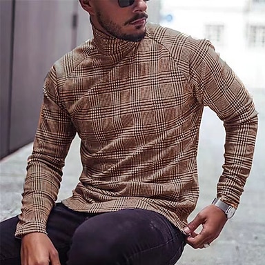 Pánské Tričko Roláková košile Tričko s dlouhým rukávem Dlouhý rukáv Polostojatý límec Klasický límeček Podzim zima Pléd Pepito Lehký Sval Úzký střih Dovolená Ležérní Černobílá Černá Žlutá Top tričko
