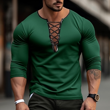 Pánské Tričko Sametové tričko Tričko Top Tričko s dlouhým rukávem Dlouhý rukáv Límeček Jaro & podzim Bez vzoru Módní Designové Základní Šněrování Dovolená ulice Jdeme ven Černá Modrá Fialová Top