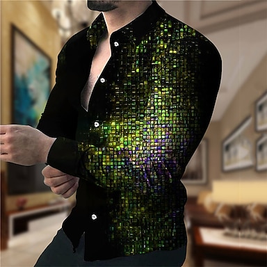 Pánské Barevné bloky Geometriské vzory Košile Dlouhý rukáv Módní Designové Na běžné nošení Denní Venkovní Dovolená Jaro léto Límeček 3D tisk Tlačítko dolů Černá Žlutá Fialová Trávová zelená