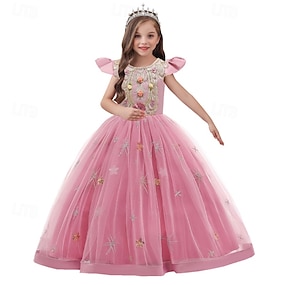 Děti Dívčí Květinové dívčí šaty Šaty na párty Pevná barva Poloviční rukáv Výkon Svatební Párty Flitry Elegantní Sladký Polyester Maxi Tylové šaty Léto Jaro 3-12 let Šampaňská Světlá růžová