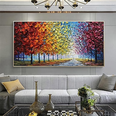 velká ručně malovaná barevná abstraktní olejomalba na plátně barevný strom les podzimní malba do ložnice dekorace obývacího pokoje umění ručně malované těžké texturované impasto malba