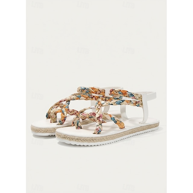 dámské ploché sandály s copánkovým páskem – barevné letní plážové boty ve stylu boho, pohodlná nazouvací obuv pro běžné výlety, dovolené i denní nošení