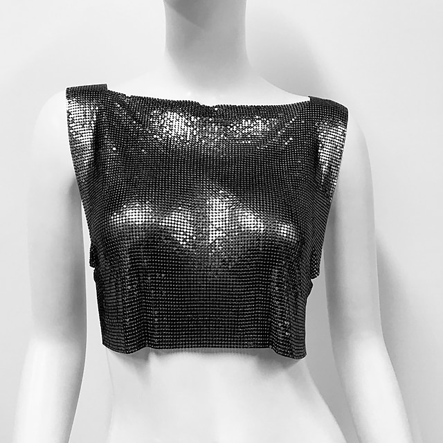 Pohlaví:Dámské,Druhy:Crop tílko,Postavy:Disko,Materiál přívěšku:Slitina,Styl:Sexy,Třpyt,Kovový,Délka rukávů:Bez rukávů,Elasticita:Neelastické,Údržba:Prát v ruce,Omyvatelné,Vzor:Pevná barva,Příležitost:Párty,Klub,Věková skupina:Dospělé,Opakované zavírání:Nátělník,