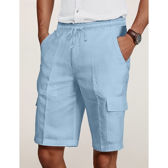 Pánské Šortky s kapsami Kraťasy Lněné šortky Letní šortky Plážové šortky Šňůrky Elastický pas Multi kapsa Bez vzoru Délka kolen Venkovní Ležérní Denní prázdniny Na běžné nošení Černá Bílá Neelastické