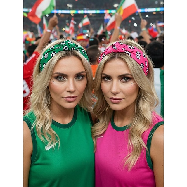 Dámská polyesterová čelenka s fotbalovým potiskem a uzlováním v několika barvách, doplněk do vlasů pro fanoušky fotbalových zápasů, podporu týmu a běžné nošení.