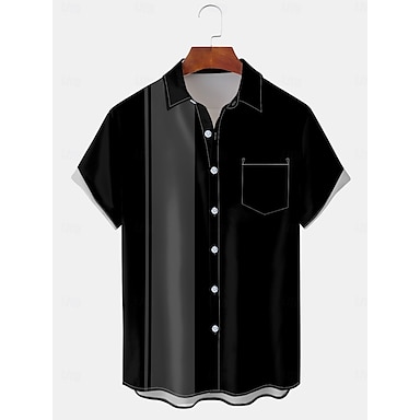 Pánské Barevné bloky Çizgi Bowlingová košile Košile na knoflíky Krátké rukávy umělecké Na běžné nošení Pohodlné Venkovní Dovolená ulice Jaro léto Košilový límec Potisk Černá