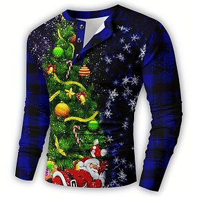 vánoce pánské vánoční stromeček henley tričko kostkovaný santa claus tree móda denní ležérní 3d tisk henley ležérní dovolená jít ven modrá červená & bílá tmavě modrá henley spring s dlouhým