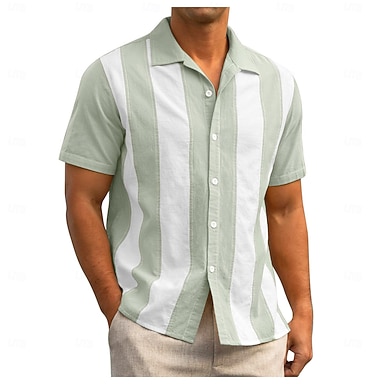 Pánské Košile Letní košile Košile pro volný čas Plážová košile Košile na knoflíky Pruhované košile Bílá Hnědá Trávová zelená Krátký rukáv Proužek Klopa Dovolená Havajské Pletený Oblečení Polyester