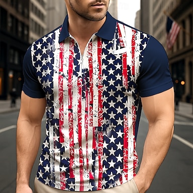 4. července 2026 250. Den nezávislosti Pánské Americká americká vlajka Polo na zip Krátký rukáv Přehnutý Neformální / sportovní Sporty a outdoor Běžné / Denní 3D tisk Léto Tiffany tyrkysová