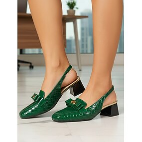 Dámské profesionální zelené lodičky s krokodýlím vzorem - pohodlné čtvercové podpatky s mašlí pro každodenní použití v kanceláři a na obchodní schůzky. &oblečení pro kariéru