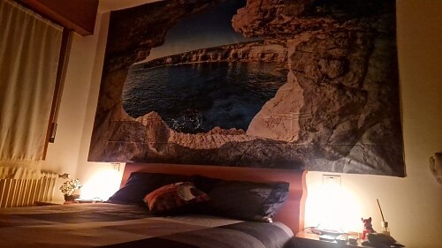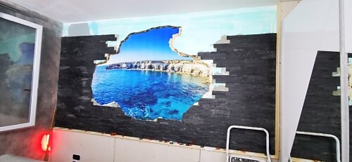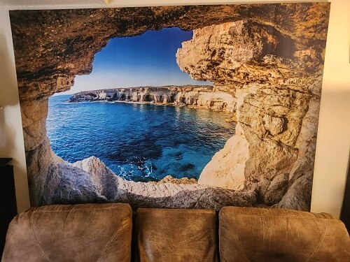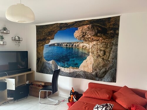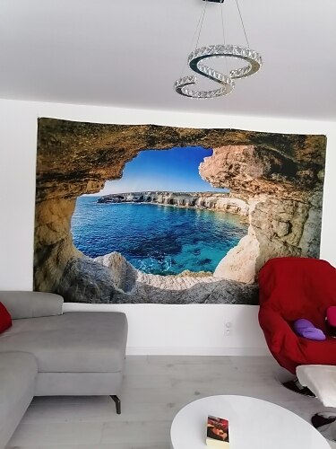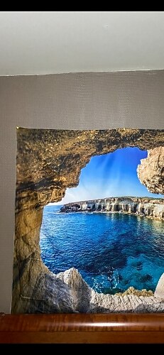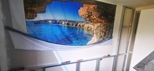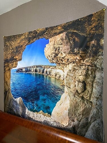 Toile conforme. La taille est correcte. Le dessin est joliment imprimé et cela rend bien. J’ai l’impression d’avoir une chambre dans une grotte qui donne sur la mer. Je vous conseille la repasser avant pour effacer les plis. C’est livré avec deux accroches. Personnellement j’ai utilisé des punaises. Toile conforme. La taille est correcte. Le dessin est joliment imprimé et cela rend bien. J’ai l’impression d’avoir une chambre dans une grotte qui donne sur la mer. Je vous conseille la repasser avant pour effacer les plis. C’est livré avec deux accroches. Personnellement j’ai utilisé des punaises.