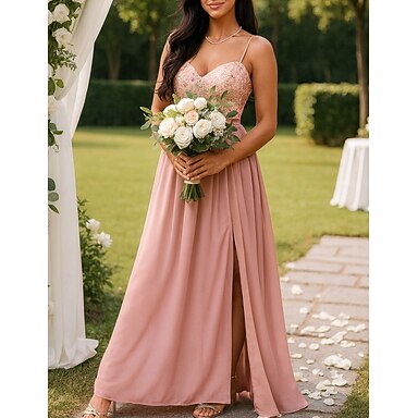 Šaty pro družičky v podobě pouzdra sloupového střihu s ramínky bez rukávů elegantní podlahové délky šifon s sklady rozparkem nařasením