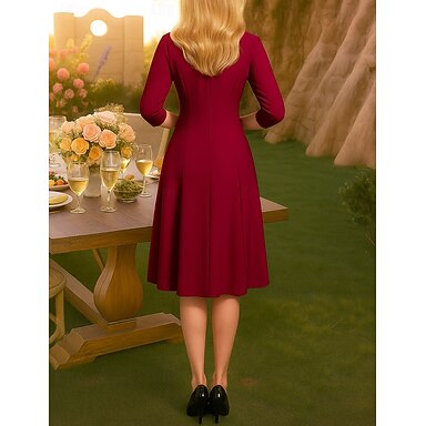 Áčkové šaty v délce čaje na ples šaty na párty cocktailové šaty šaty pro matku nevěsty 3/4 rukáv kulatý výstřih elegantní vintage párty s aplikacemi barevného bloku