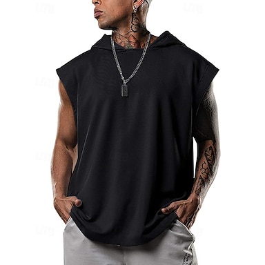 Pánské Bez rukávů Vesta Top Tílka Košile bez rukávů Bez rukávů Kapuce Léto Bez vzoru Módní Designové Sval Venkovní Jdeme ven Posilovna Černá Bílá Khaki Top tričko pro muže