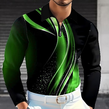Pánské Geometrický Çizgi Pólo Dlouhý rukáv Polo tričko Klopa Obchodní příležitostné Oblečení na atletiku Denní nošení Kapsy 3D tisk Knoflíky Jaro Podzim Vodní modrá Jezerní modrá Trávová zelená