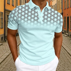 Herre Geometrisk Polo Kortærmet Polo skjorter Skjorter med krave Afslappet atletiktøj 3D-udskrivning Knapper Sommer Blå Brun Grøn