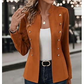 Dame Blazer udendørs Høj krave Knapper Helfarve Åndbart Mode Regulær Overtøj Langærmet Efterår Sort S