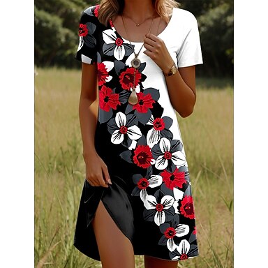 Dame Mini kjole Sommerkjole Hverdagskjole T shirt kjole A Linje Kjole Stilfuld Afslappet Strand Regulær Nuance Blomstret Grafisk Kortærmet Rund hals Lys Lyserød Lyserød Vin Sommer Forår