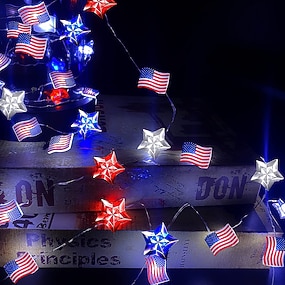 Patriotiske lyskæder 13FT 40LED med fjernbetjening til 4. juli uafhængighedsdag 250-års jubilæum mindesdag stjerner og rød hvid blå lyskæder til hjemme dekoration