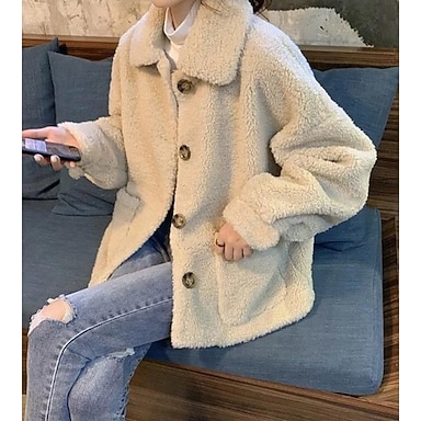 Dame Vinter jakke Fleece jakke Teddyfrakke Bekvem Lomme Elegant Aktiv Sød Stil Daglig Helfarve Formel udendørs Hjem Gave Kort Aftæpning Løstsiddende Langærmet Overtøj Abrikos Forår Efterår
