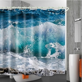 Badekarsgardin med Kroge 180cm*180cm(70"*70") Polyester Vaskbart Vandtæt Mønstret Badeværelsesbadekar Deko Kyst Ocean Strand