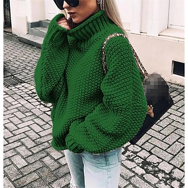 Dame Pullover trøje Stilfuld Afslappet Blødt Helfarve Kabel Rullekrave Overdimensionerede Langærmet Almindelige toppe Strikke udendørs Daglig Ferie Sort Vin Efterår Vinter