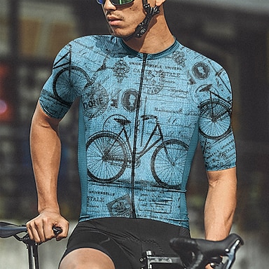 Herre Cykeltrøje Bogstav & Nummer Sjov Kortærmet Cykel T-shirt Trøje Toppe med 3 baglommer Bjerg Cykling Vej Cykling Hurtigtørrende Refleksbånd Tilbage til lomme Svedtransporende Sport Sort Blå Grøn
