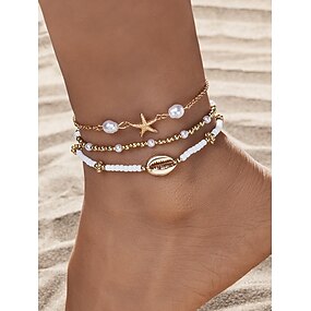 Flerfarvede boheme-ankelkæder i harpiks og legering til kvinder, perle- og skaldesign, perfekt til ferie, afslappet hverdagsbrug
