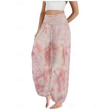Dame Imiteret bomuldslinned Bredt Bukseben Bukser Etnisk Stil Afslappet Boheme Fuld længde Høj Talje Hældning Lomme Elastisk Talje Printer Åndbarhed Blød Mikroelastisk udendørs Yoga & Danse Sko
