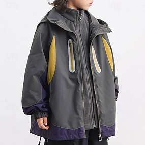 Børn Drenge Trekking-jakke Udendørsjakke Overtøj Farveblok Langærmet Patchwork Hold Varm Frakke udendørs Sport Mode Farvet grå Efterår Vinter 4 år +