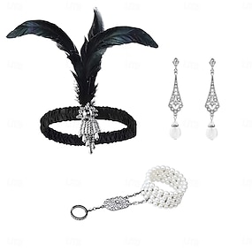1920'erne Den store Gatsby 1920'er pandebånd Den store Gatsby Fjer Kontor / Business Funklende Glimmer Udklædning Dame Karneval Valentinsdag Maskerade Festaftentøj Maskerade Festival Voksne Handsker