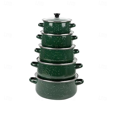 5 dele emaljegrydesæt, grydesæt med låg, keramisk gryde, fladbundet gryderet til suppe og konservering