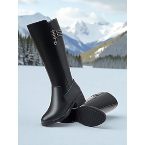 Sorte knæhøje støvler i læder til kvinder med uldfor - stilfuld vintermode, perfekt til koldt vejr, udendørsaktiviteter og afslappede udflugter