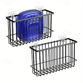 2 stk opbevaringsstativer metaltråd opbevaringskurv væghængt kurv vægmonteret arrangørkurv til køkken kontor pantry badeværelsesskab køkkenarrangører og opbevaring køkkentilbehør