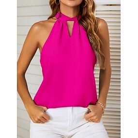 Kvinders tanktop med stropper ensfarvet stilfuld casual uden ærmer halterneck almindelige toppe daglig hvid pink fuchsia sommer