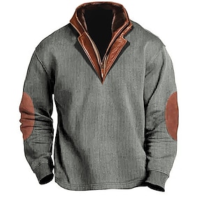 Herre Sweatshirt Kvart lynlås sweatshirt Abrikos Sort militærgrøn Navyblå Grå Halv lynlås Farveblok Patchwork Rillet Med Tekstur Sport & Udendørs Daglig Ferie Polyester Fløjlscord Gade Basale