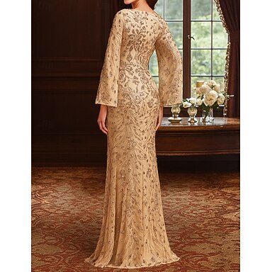 A-Line Havfrue Trumpet Gulvlængde Bryllup Gæst Kjole Formelle Kjoler Aften Kjole Mor til Brudekjole Lang Ærme Fyrkantet Hals Elegant Vintage Luksuriøs Formelle med Pailletter