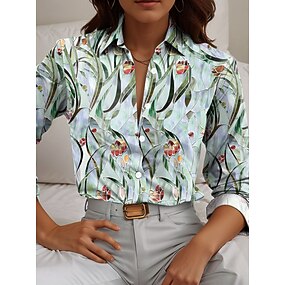 Damebluse i hør Lignende Åndbar Letvægts Knap-ned Tunika Bluse Krave Langærmet Blomster Casual Regulære Toppe Arbejde Daglig s Print Pink Rød Blå Grøn Forår Efterår Vinter