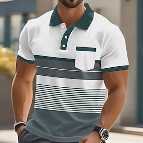 Herre Stribe Polo Kortærmet Polo skjorter Skjorter med krave Forretningsmæssigt afslappet udendørs atletiktøj Dagligdagstøj Lomme 3D-udskrivning Knapper Sommer Blå Brun Grøn