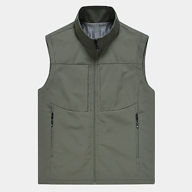 Herre Vest Gilet Fiskevest Trekking-vest Ærmeløs vest Gilet jakke udendørs Ferie Gade Chic og moderne Sommer Forår Lomme Hurtigtørrende Polyester / Bomuld Åndbart Ren farve Lynlås Høj krave Regulær