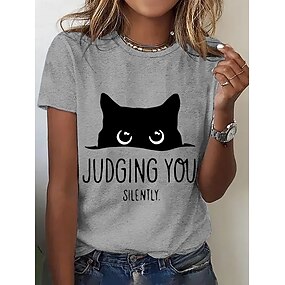 Dame T-shirt Trykt mønster Grafisk Dyr Kat Stilfuld Moderne Afslappet Kortærmet Rund hals Almindelige toppe Daglig I-byen-tøj Weekend Blå Sort Lyserød Himmelblå Grå Sommer Forår